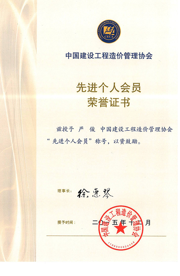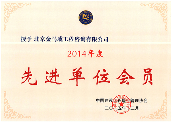 公司榮獲中國(guó)建設(shè)工程造價(jià)管理協(xié)會(huì)“2014年度先進(jìn)單位會(huì)員”稱號(hào),湖北分公司經(jīng)理嚴(yán)俊榮獲“先進(jìn)個(gè)人會(huì)員”稱號(hào)。