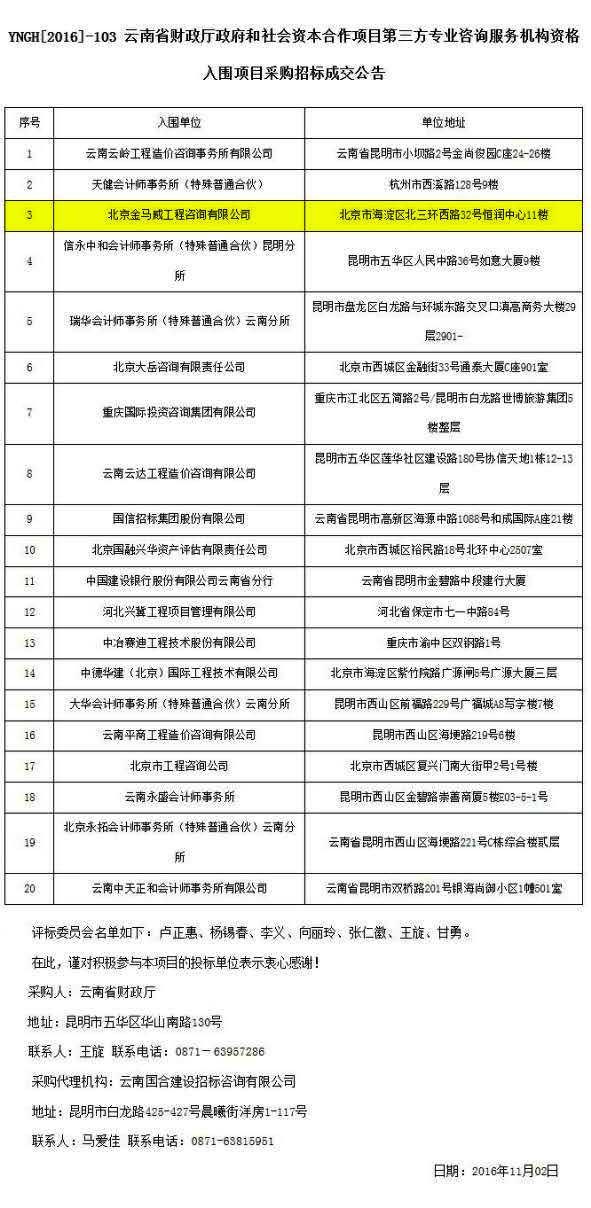 公司入圍云南省財(cái)政廳政府和社會資本合作項(xiàng)目
