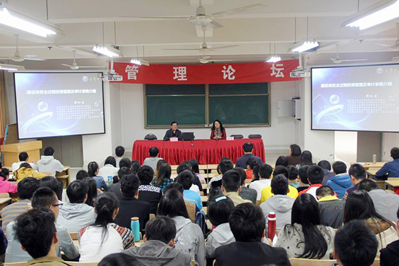 儀式結束后,周和生董事長為學院師生們作了題為“建設項目全過程投資管理及審計系統(tǒng)介紹”的學術講座。